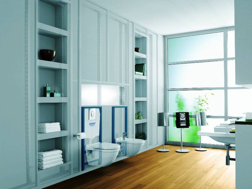 Подвесной унитаз с инсталляцией имеет особенности в своем строении:
