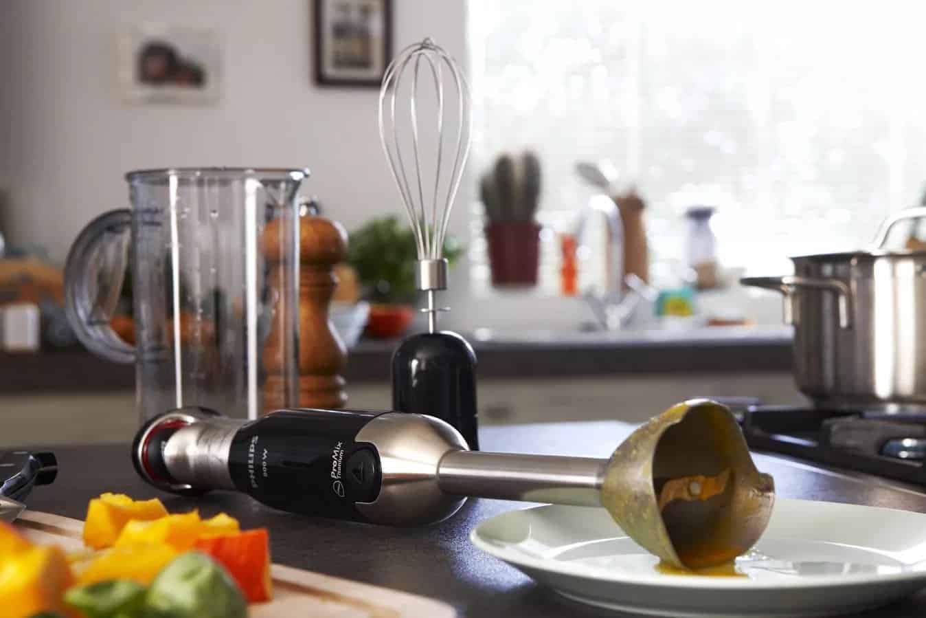 В рейтинг погружных блендеров данная модель попала благодаря отличному функционалу. Данное устройство оснащено инновационной технологией смешивания ProMix, а также опцией SpeedTouch с интуитивным управлением (скорость обработки продуктов выше, чем сильнее нажатие на кнопку). Такой блендер популярный во многом благодаря наличию мощного и надежного мотора 800 Вт. Он позволяет с легкостью измельчить практически любой ингредиент до однородной текстуры.