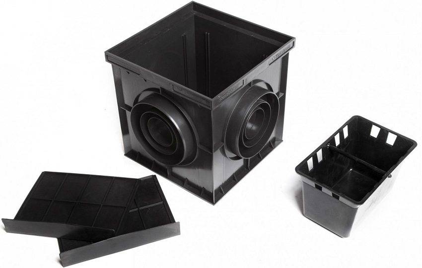 - Фильтр-пескоулавливатель – часть конструкции, которая присутствует не во всех моделях. Служит для того, чтобы в канализацию с водой не попадали мелкие частицы почвы, песок и другой мусор. Такой фильтр находится ниже лотка дождеприемника, поэтому частицы мусора просто опускаются на его дно, а вода поднимается до уровня выхода из приемника.