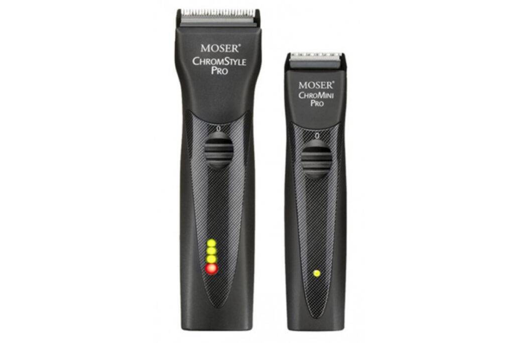 - Mоser 1881-0055 Li+Pro является моделью ротерного типа со встроенной системой охлаждения, что обеспечивает продолжительную работу без перегрева. Аппарат может стричь автономно в течение 75 минут либо функционировать от сети. В комплект входят 6 различных насадок, позволяющих устанавливать 11 вариантов длины волосков. Главным достоинством модели являются остро заточенные стальные ножи, которые можно быстро снять и заменить. Дополнительно идут: щеточка для удаления волосков, специальное масло для ухода, ножницы, пеньюар, расческа.