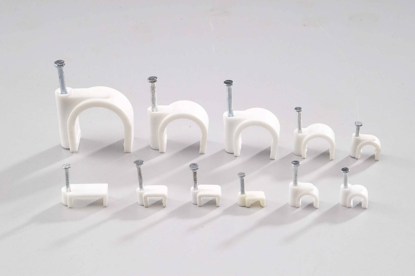 Если вы делаете открытую проводку без труб и кабельных каналов, то для крепления проводов и кабелей используйте специальные пластмассовые скобы, подобранные по диаметру проводника. Такие скобы продаются в любом хозяйственном магазине в отделе электротоваров. Расстояние между скобами не должно быть слишком большим, иначе ваши провода будут провисать под собственным весом.