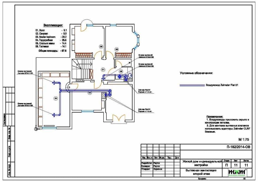 Проектирование вытяжной установки начинается с разработки технического задания. В нем указываются все требования по воздухообмену для каждой комнаты.
