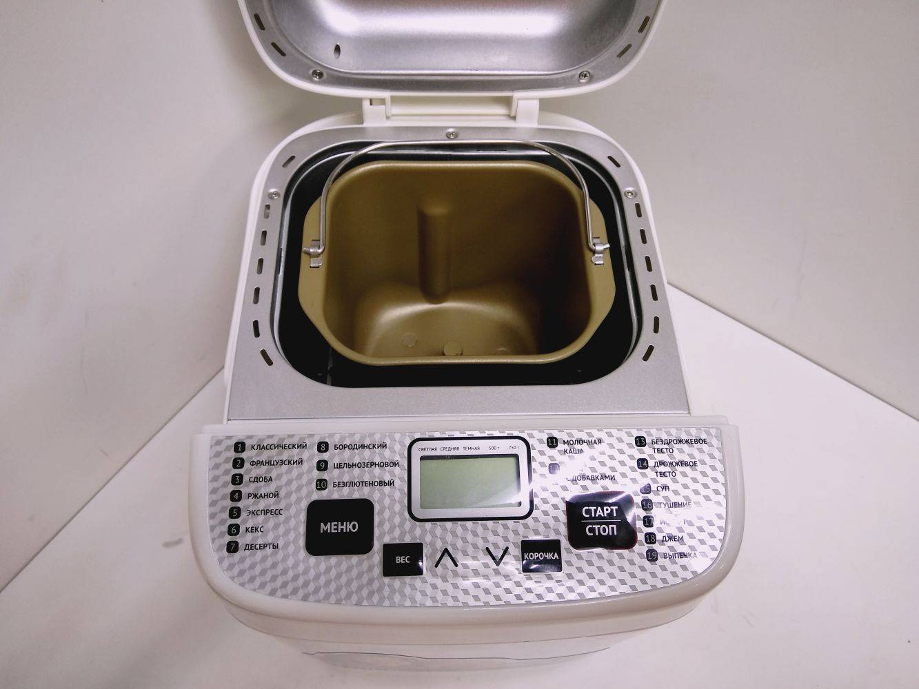 Эта модель имеет 19 автоматических программ. В ней легко можно испечь любой хлеб весом 500, 750 или 1000 г.