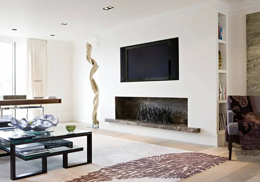 Телевизор в нише в сочетании с электрокамином, биокамином или фальш-камином смотрится очень красиво, задает интерьеру нужный настрой и делает атмосферу намного комфортнее и уютнее.