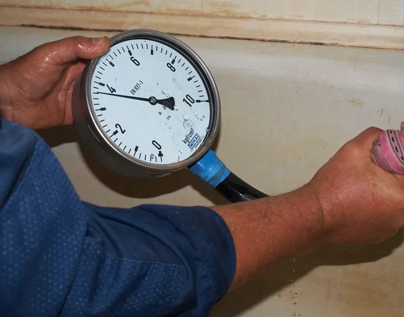 Напор в трубопроводе можно самостоятельно измерить манометром. Прибор необходимо подключить к любому внутриквартирному водному источнику. Манометр можно присоединить к душевой лейке, измерить показатель и сравнить его с нормативом.