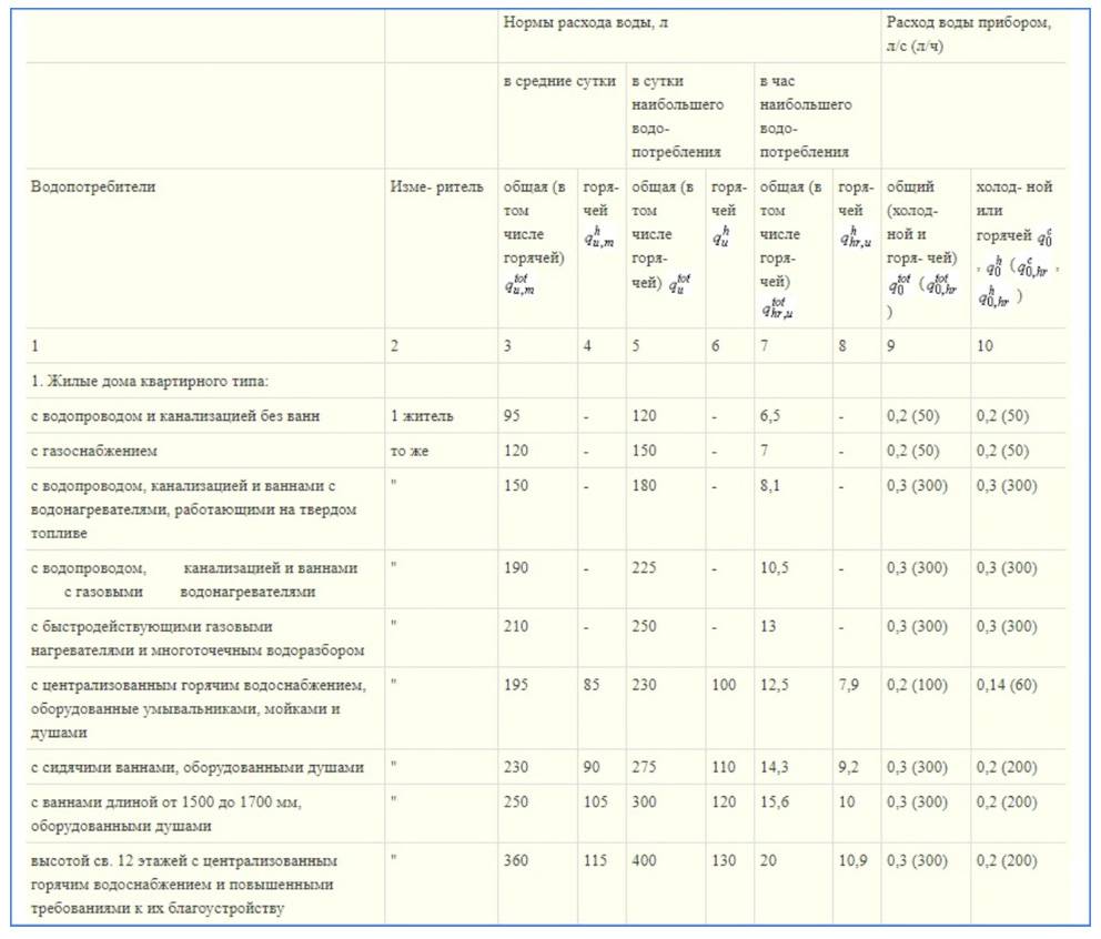 Рис. 4 Нормы расхода на одного жильца домов квартирного типа по СНиП 2.04.01-85*