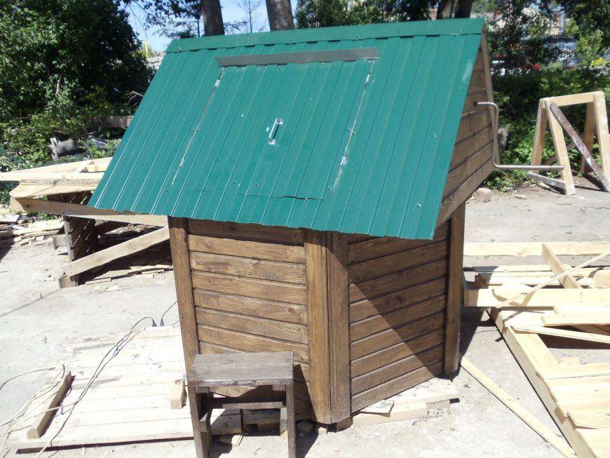 - фронты и скатная часть обшиваются. Доски должны выступать над конструкцией, как козырек;