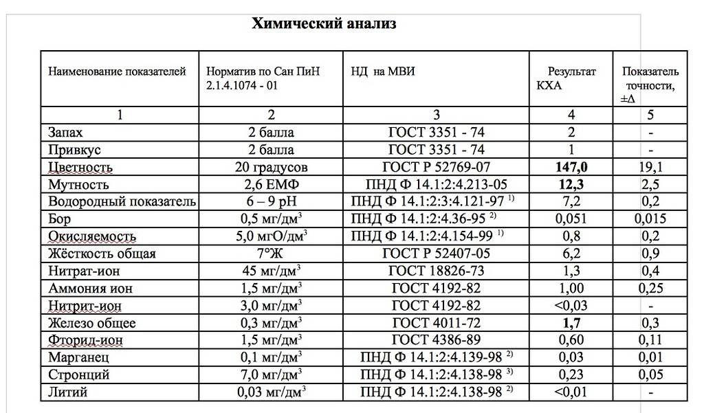 Показатели химического анализа воды должны укладываться в нормативы