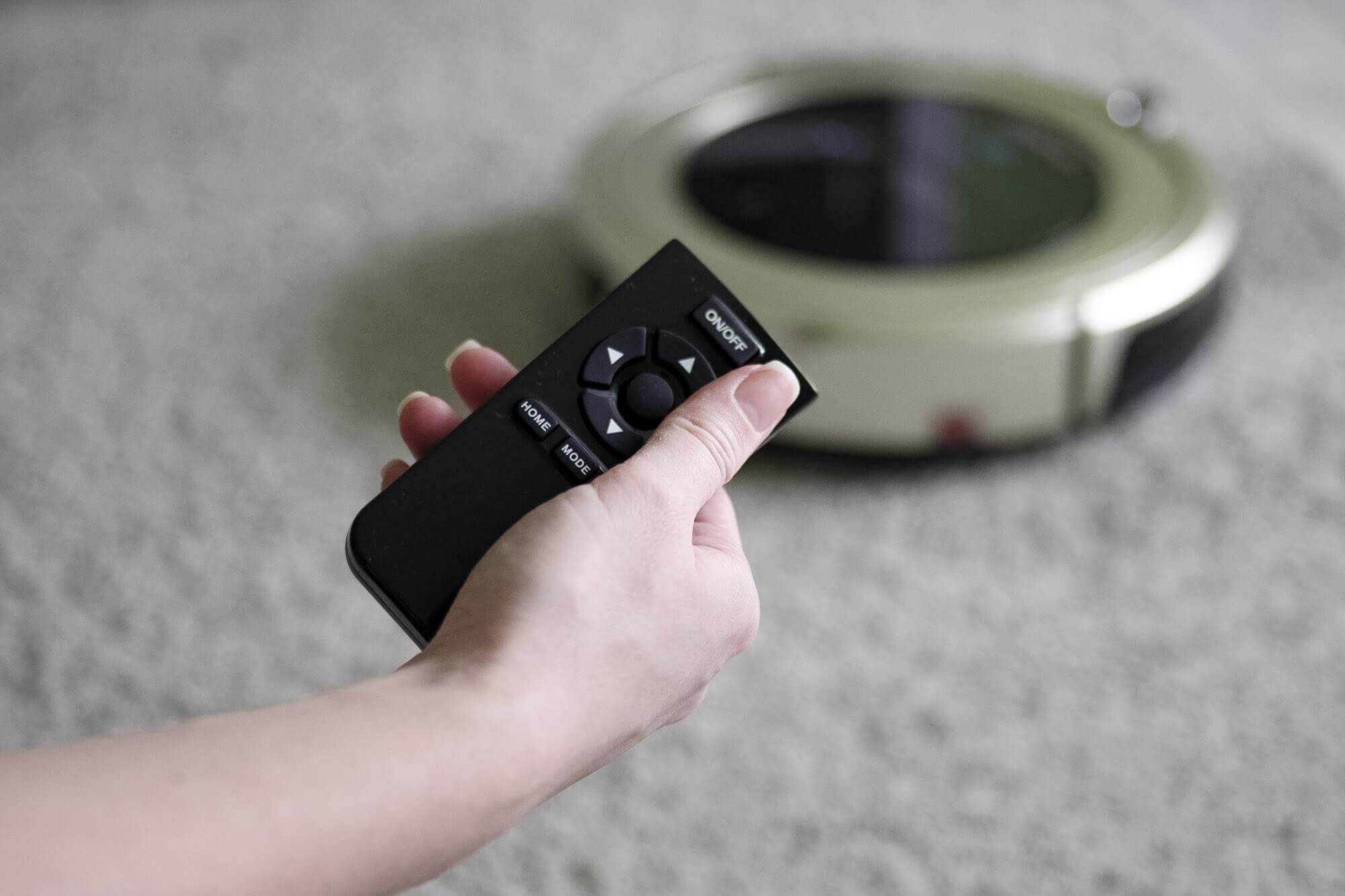 - Ручной режим. Управлять роботом-пылесосом в этом случае удобно пультом ДУ. Этот режим можно использовать, когда необходимо направить робот на определенный участок, который нуждается в очистке или же самостоятельно управлять процессом уборки.