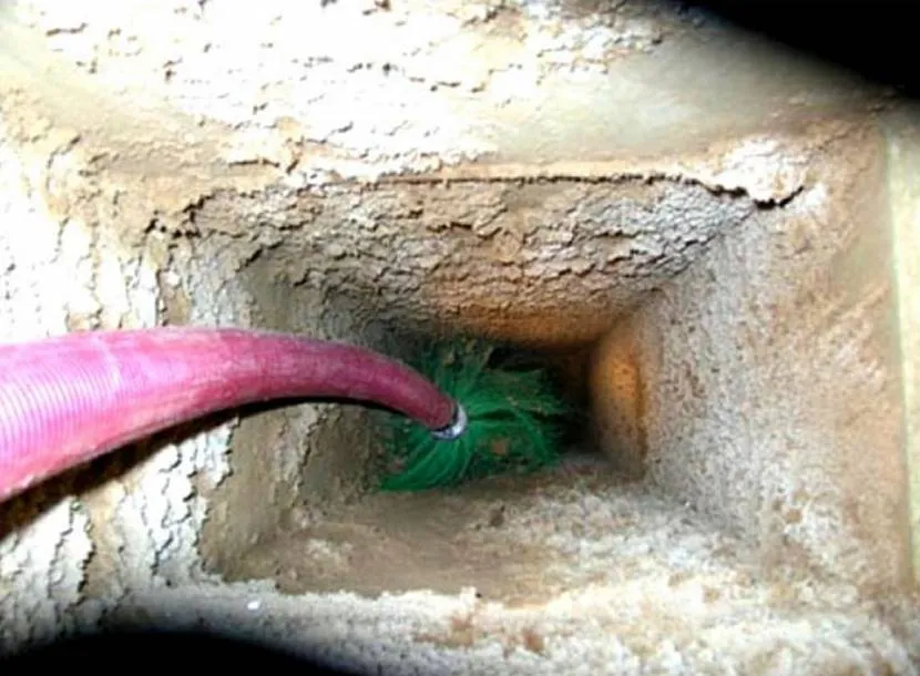 - На завершающем этапе чистки вентиляционных каналов, необходимо просунуть внутрь шланг пылесоса и собрать скопившиеся частицы грязи и мусора.
