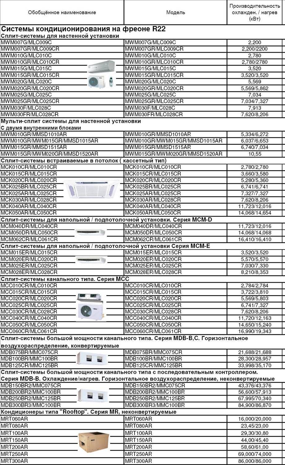 Шифры 07, 10, 13, 16, 18, 24, 30 в маркировке обычно соответствуют показателям максимальной мощности, которой может достигать кондиционер, работая на охлаждение. Эти коды будут соответствовать 2 кВт; 2,5 кВт; 3,5 кВт; 4,5 кВт; 5 кВт; 6,5 кВт и 8 кВт.