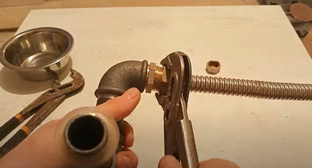 Затем с помощью гаечных ключей закрутите гайку с достаточным усилием.