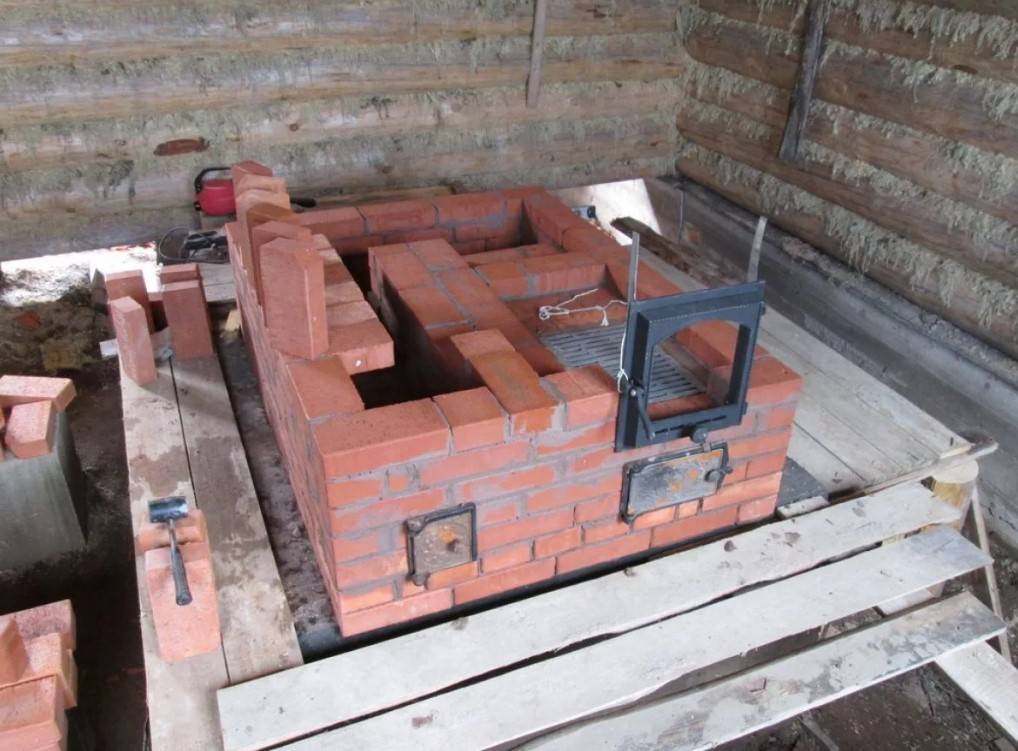 Дно топочной камеры наклонено к печной дверце. Уклон (подушка) заполняется глинистым раствором с щебнем. Если кирпич кладут на непросохшую подушку, она может деформироваться.
