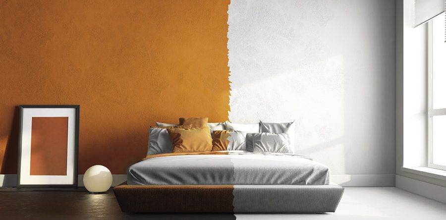 После подготовки поверхности нужно переходить к покраске. Такое решение прекрасно подойдет для гипсокартона. А вот для бетонных стен или панелей МДФ необходимо дополнительное выравнивание.