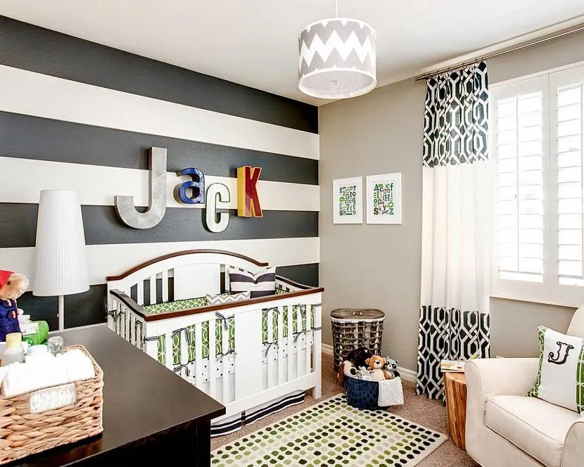 - Полосатые стены создают удачную комбинацию с поверхностью, окрашенной в цвет одной из полос.