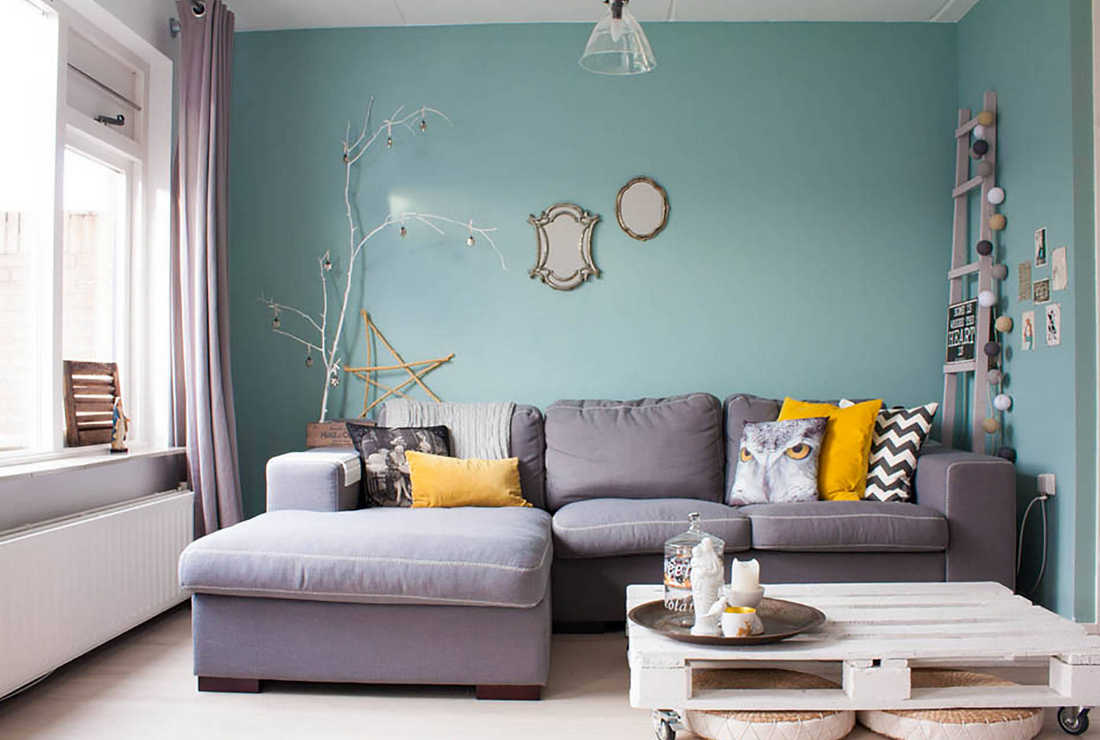 Цвет стен в гостиной должен быть спокойным, но при этом поднимать настроение. Ведь эта комната используется как для отдыха семьи, так и шумных посиделок с гостями. Для больших и просторных гостиных подойдут голубые, золотистые, желтые, серо-голубые, серо-зеленые цвета малой насыщенности. А для небольших гостиных следует выбирать более насыщенные оттенки, создающие праздничное настроение – пурпурные, фиолетовые, персиковые, синие, желтые.