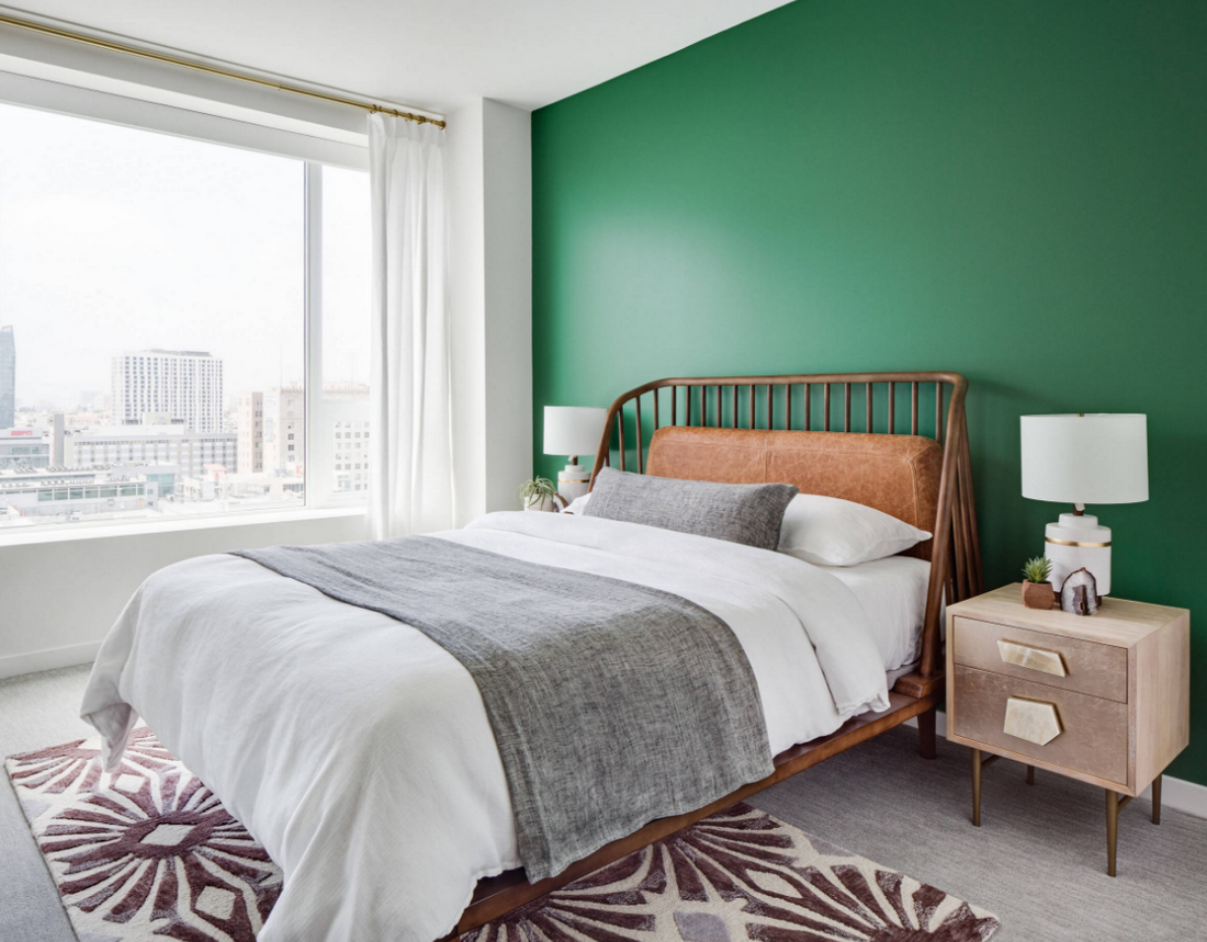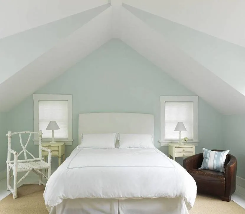 Прекрасный выбор для спальни – приглушенный розовый или нежный бирюзовый. Ярким акцентом может служить цвет свежей мяты или лесных колокольчиков.
