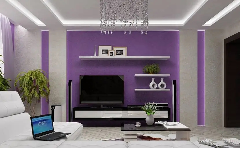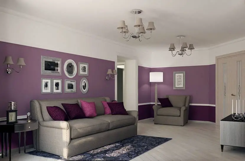 Сиреневые стены в интерьере гостинойИсточник roomester.ru