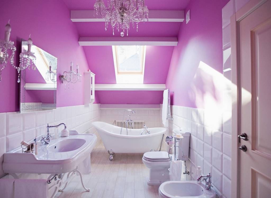Завершающим этапом отделки считается нанесение краски на стены. Перед началом работы мебель, если таковая имеется в ванной комнате, лучше вынести, а сантехнику накрыть полимерной пленкой, чтобы избежать попадания красящего пигмента.