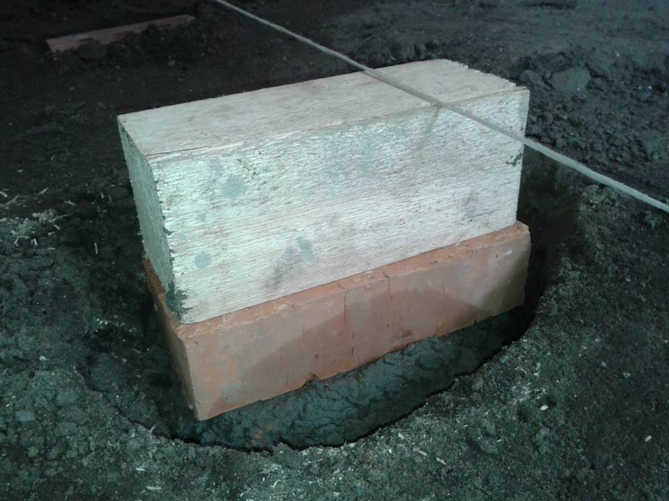 Чтобы при устройстве слоев пола в гараже было проще ориентироваться с толщиной имеющегося слоя, их размеры можно отбить на стенах гаража. Если расстояние от стены до стены небольшое, хватит и этих отметок. Если площадь солидная, в некоторых местах можно вбить колышки, на которых тоже нанести разметку с толщиной каждого слоя. Это намного упрощает процесс. После того, как все слои засыпаны, колышки выдергивают, засыпают лунки песком и трамбуют его хоть тем же колышком.
