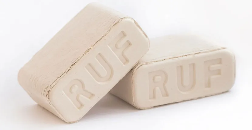 Ruf – это кирпичики из спрессованных опилок с выдавленным на двух гранях названием. Выпускаются как хвойные, так и березовые брикеты для отопления. Отличить их можно по цвету: березовые очень светлые, практически белые.