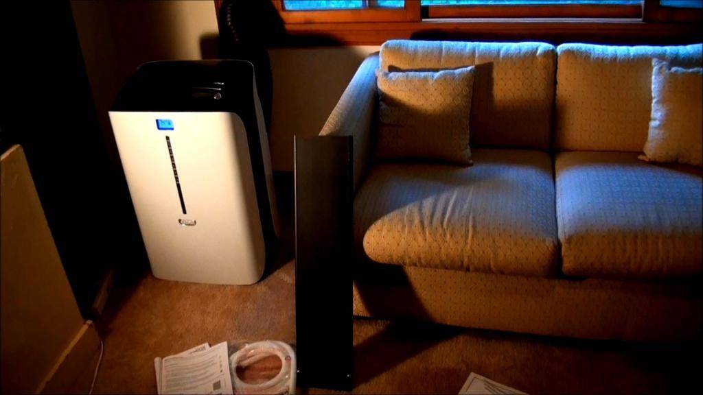 Мобильные кондиционеры устанавливаются на пол. Трубка для выхода горячего воздуха должна быть выведена на улицу. Для этого можно сделать специальное отверстие в двери или окне. Мобильную станцию можно переносить в любое удобное место. Недостатком этой системы кондиционирования является повышенный уровень шума и скопление конденсата в емкости аппарата. Сливать образовавшуюся воду нужно будет с периодичностью один раз в несколько часов.