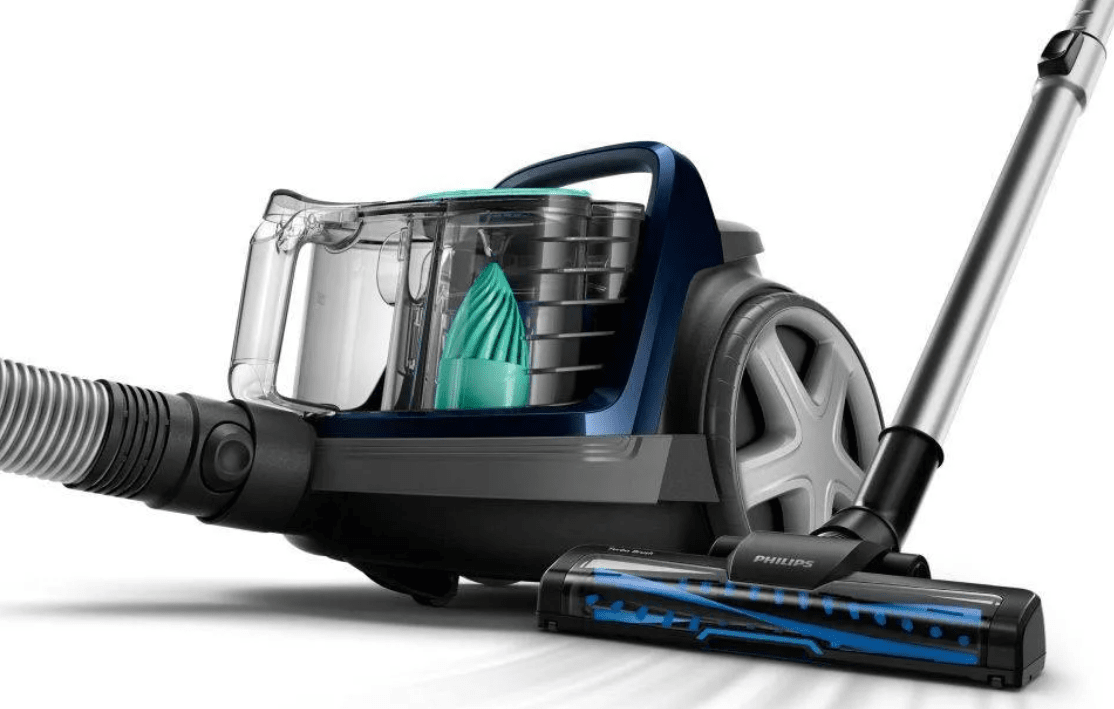 Надежный помощник в доме незаменим, особенно если семья большая и есть животные. Производители предлагают использовать в быту пылесос Philips FC9573 PowerPro Active, отличающийся адекватной ценой и мощностью (1900 Вт). Модель имеет длинный шнур (6 м), эффективно собирает волосы, шерсть питомцев и любую грязь. В комплектацию входят 3 щетки, которые понадобятся в работе. Фильтр тонкой очистки удерживает мелкую пыль, благодаря чему воздух становится чище.