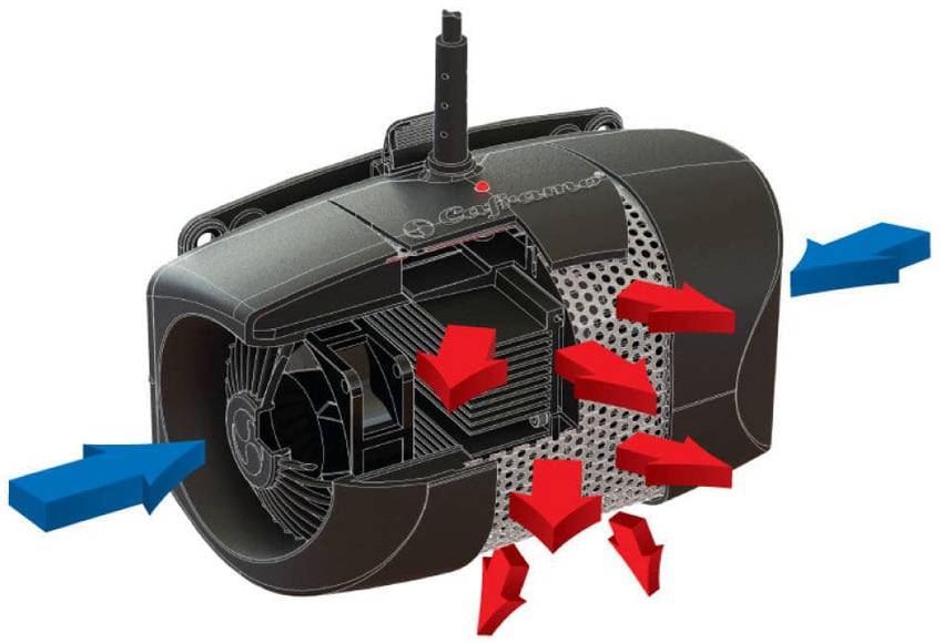 Когда температура внутри помещения оказывается ниже заданной, то калорифер автоматически включается. С помощью термореле можно удерживать заданную температуру и быть застрахованным от нагрева устройства свыше 140 градусов.