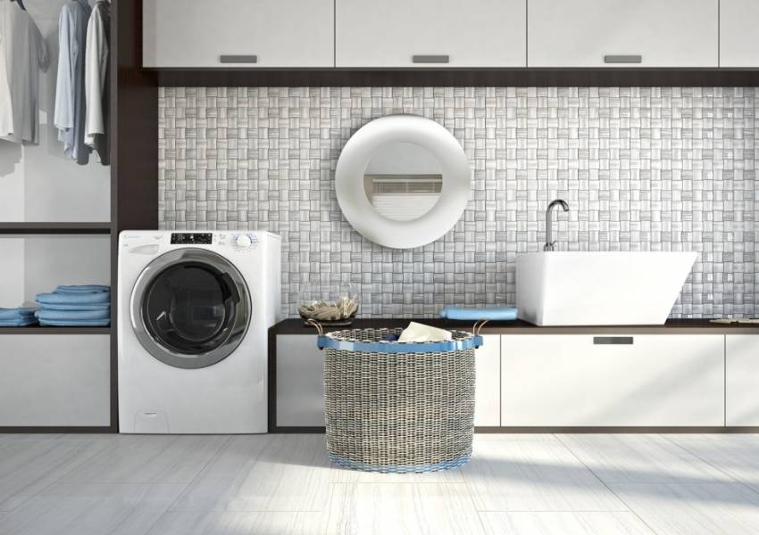 Помимо функциональности, к оформлению ванной предъявляются и эстетические требования. Для их обеспечения следует продумать подвод коммуникаций, подобрать машинку и раковину, которые будут гармоничны в отношении дизайна.