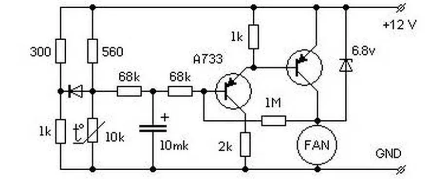 Резистор R2 в свою очередь определяет порог, когда вентилятор должен сработать.