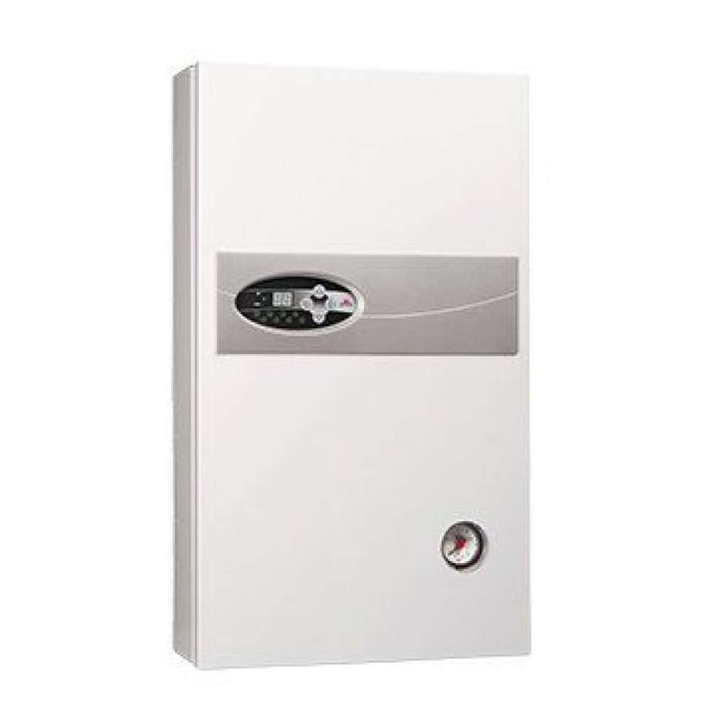 Этот отличный напольный электрический котел для частного дома или квартиры отличается хорошим базовым оснащением при демократичной стоимости. Электронная схема управления обеспечивает простоту настройки, точное поддержание заданного температурного режима. Для оперативного включения и регулировок пригодится пульт дистанционного управления. При необходимости к котлу можно подключить внешний термостат. Первичный теплообменник для продления срока службы сделан из нержавеющей стали. Защитное устройство предотвращает повреждение ТЭНа перегревом.