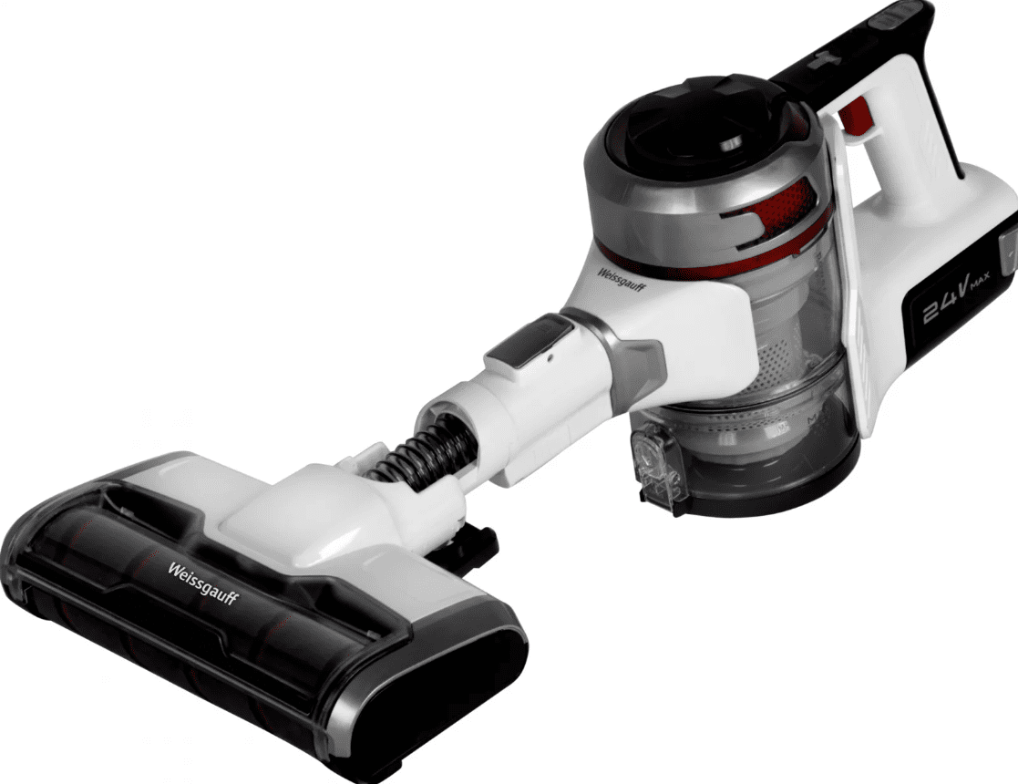 Благодаря тому, что пылесос Weissgauff V9 Turbo Cyclone вертикальный, его легко хранить. Модель включает в себя 4 режима работы, комплект насадок, необходимых в работе, зарядное устройство и крепеж для стен. Турбощетка эффективно очищает ламинат и паркет, при этом не царапает поверхность. Мощный двигатель помогает одолеть даже самые неподдающиеся загрязнения, при этом расходует меньше энергии. Есть возможность для очистки мебели, штор и узких щелей.