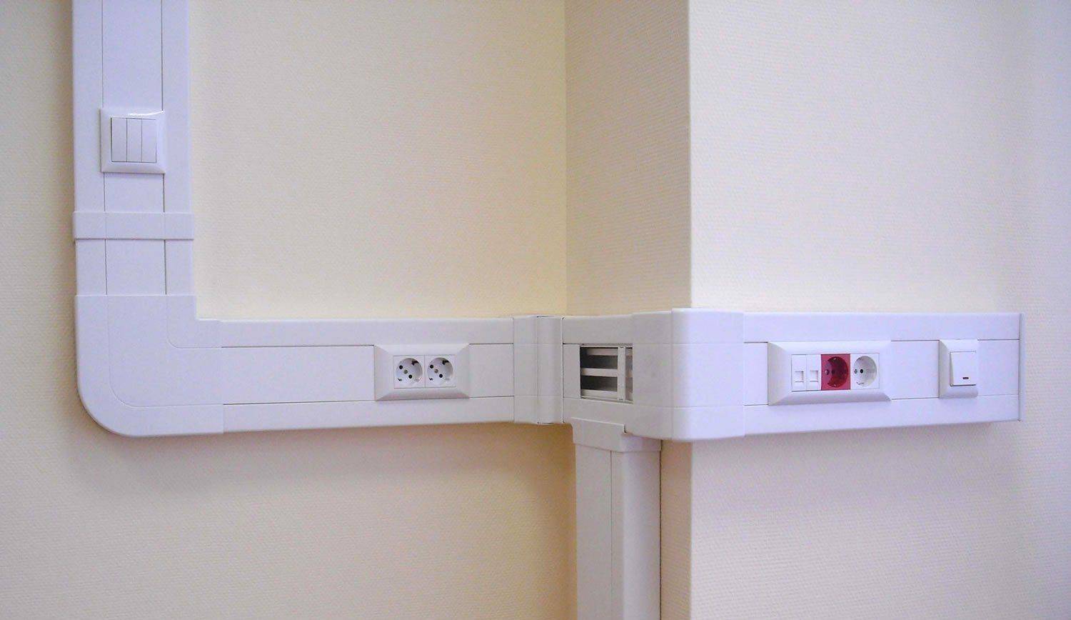 Открытый монтаж выполняют с размещением силового провода в кабель-канале или защитном рукаве, гофре, плинтусе, чтобы исключить возгорание пожароопасных конструкций или повреждение проводников.
