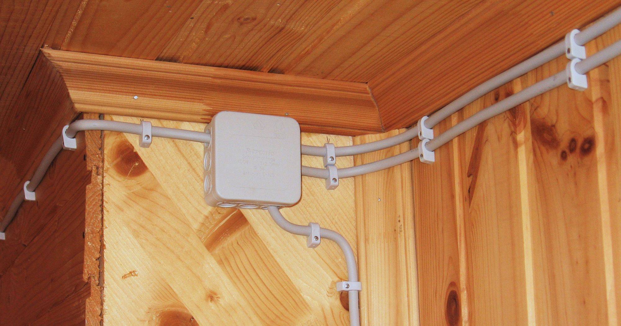 Открытая проводка располагается поверх стены или потолка. Но открытая — не значит «незащищенная». Для открытой проводки точно так же используются либо готовые кабельные каналы (кабелегоны), либо ПВХ-трубки, в которые укладываются провода. В некоторых случаях открытую проводку делают кабелями в двойной или даже тройной изоляции. Так, например, делают проводку на дачах и в загородных деревянных коттеджах. Для открытой проводки используются специальные розетки, выключатели и распределительные коробки. Они имеют закрытый корпус, и крепятся прямо на стену.