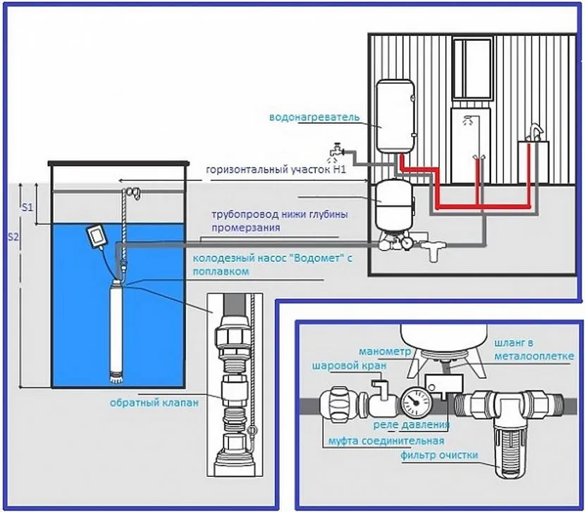 Пример применения поплавка при снабжении дома водойИсточник nasosovnet.ru