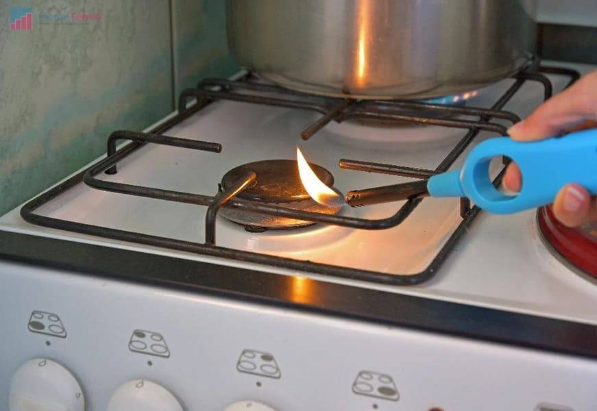 - Зажгите пламя вручную — спичками или зажигалкой.