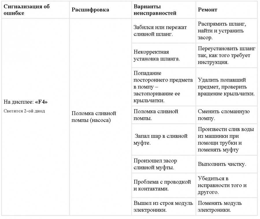 Е2 – ошибка при сливе. Чаще всего возникает при засорении сливного фильтра.