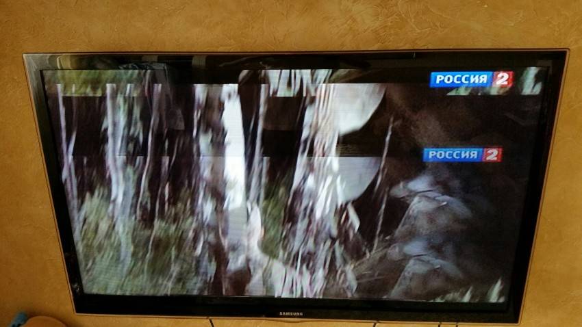 - “Снег” на экране. При обнаружении подобного искажения изображения в первую очередь следует проверить подключение антенны, целостность кабеля или попробовать перенастроить каналы. Если это не помогло, то проблема кроется глубже: возможно в тюнере или же самой матрице;
