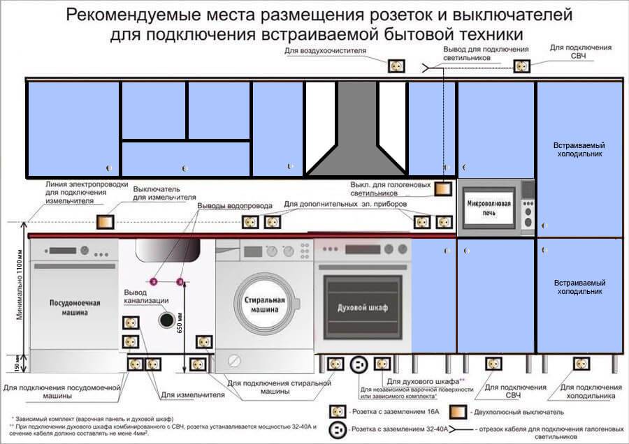 Чтобы правильно сделать электропроводку в кухне, советуем учитывать следующие рекомендации:
