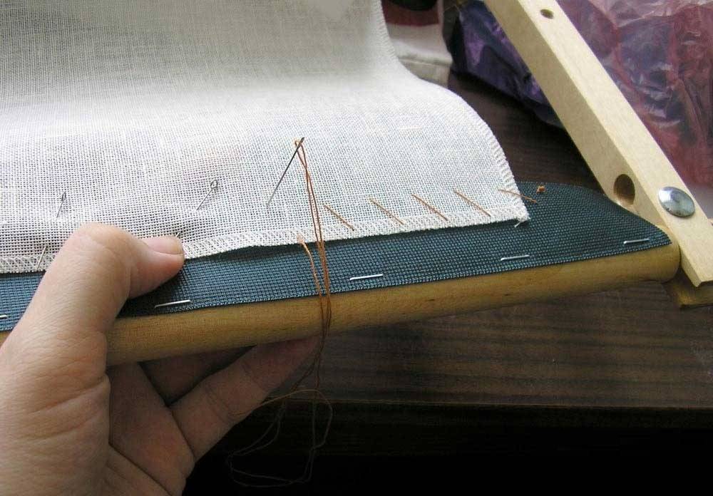 | Степлером и скобами бязь прикрепляется к деревянному каркасу изнутри реек | |