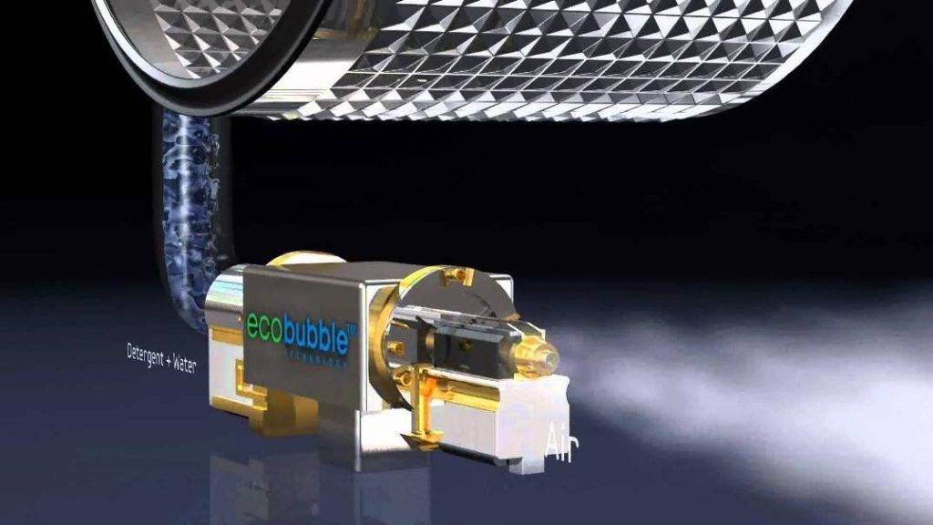- Генератор Eco Bubble. Благодаря функции, порошок становится пеной, которая быстрей попадает в структуру ткани, улучшает отстирывание сложных пятен, благодаря пузырькам воздуха. Экономит порошок, электроэнергию, позволяя стирать в холодной воде.