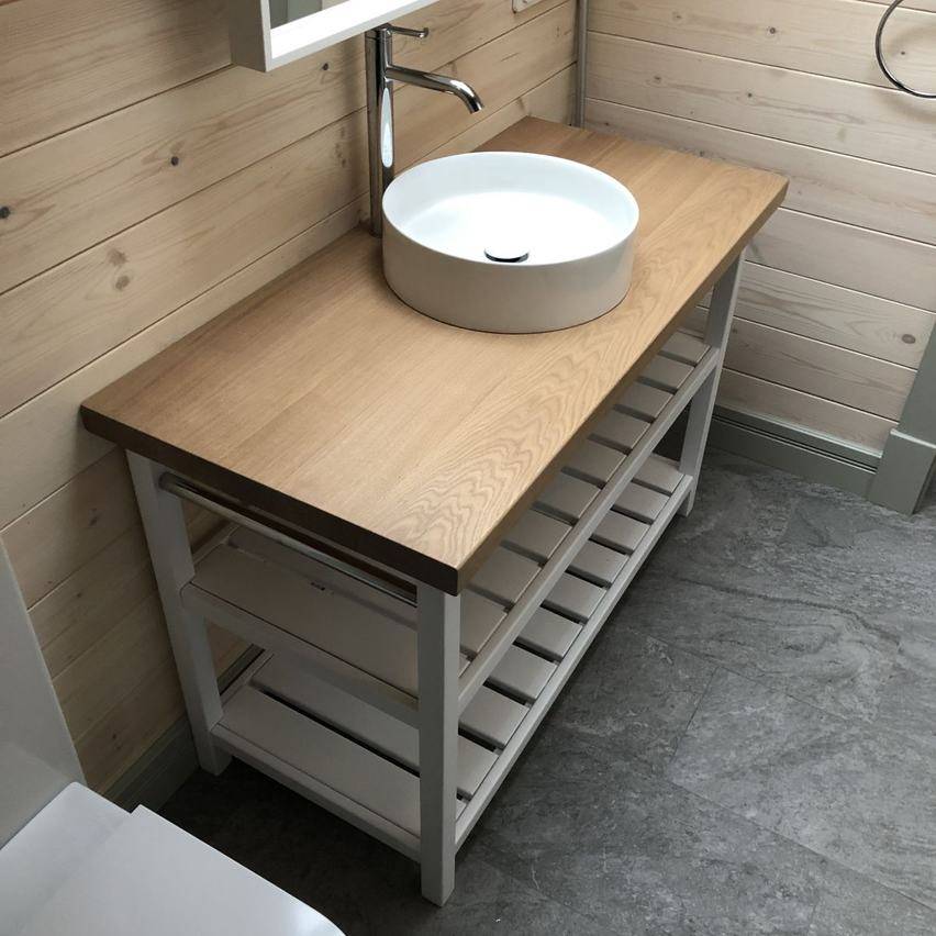 Если вы не хотите останавливаться на типичной тумбе под раковину, то ваш верный выбор – столешница. Кроме привлекательно дизайна, она может помочь неплохо сэкономить – изделие из недорогого материала обойдется даже дешевле, чем конвейерная мебель.