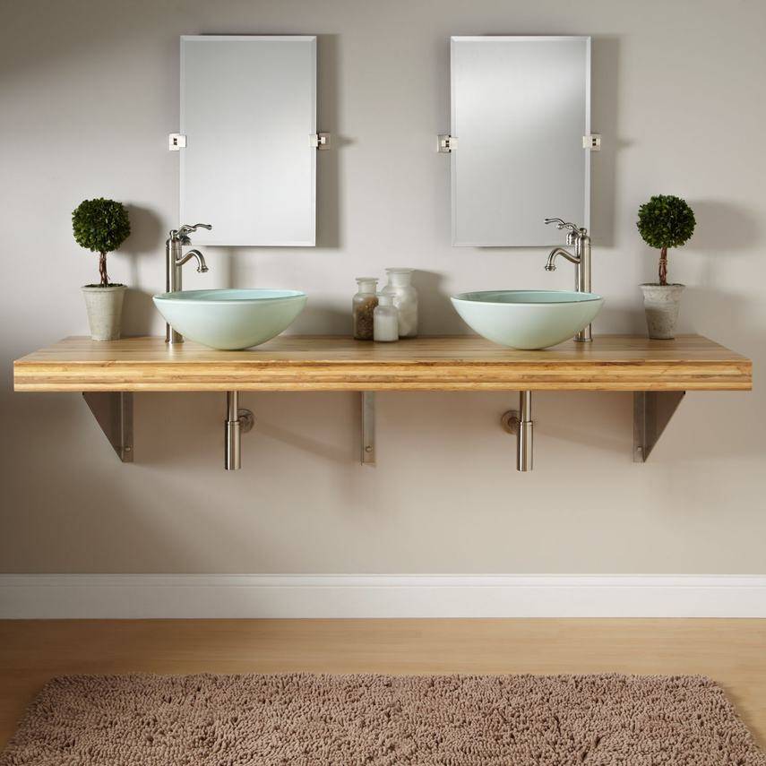 Специалисты рекомендуют подбирать конструкцию в зависимости от сантехники. Например, настольная раковина является универсальным решением, которое идеально будет смотреться как на деревянном, так и на стеклянном модуле.