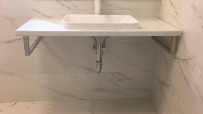 Особенности монтажа определяются типом выбранной конструкции. Если речь идет о подвесной модификации, придется приложить немало сил. Понадобятся специальные кронштейны для удержания столешницы. Речь идет о крепежах Г-образной конфигурации.