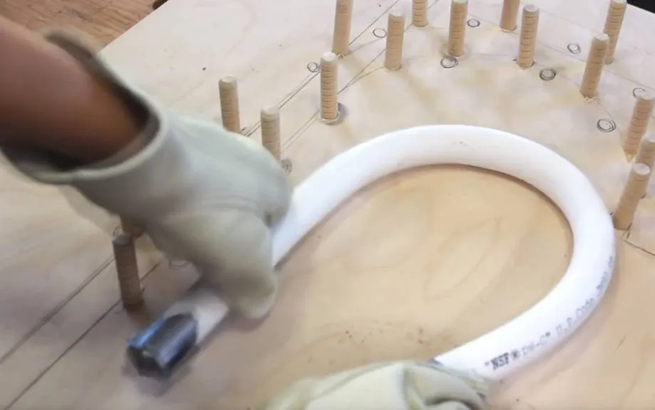 Создав требуемый угол изгиба, нужно оставить изделие до полного охлаждения и лишь после этого извлечь из каркаса.