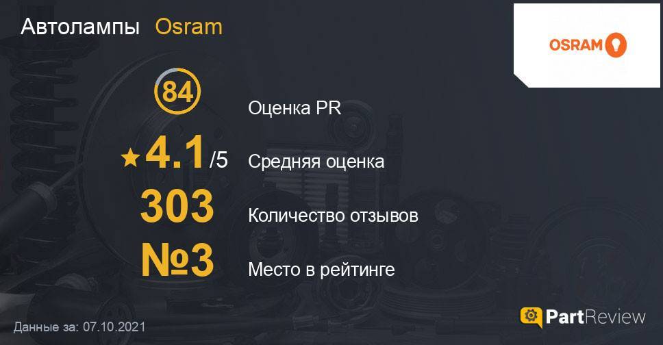 В мае 2021 на PartReview сложилось позитивное мнение о автолампах Osram.