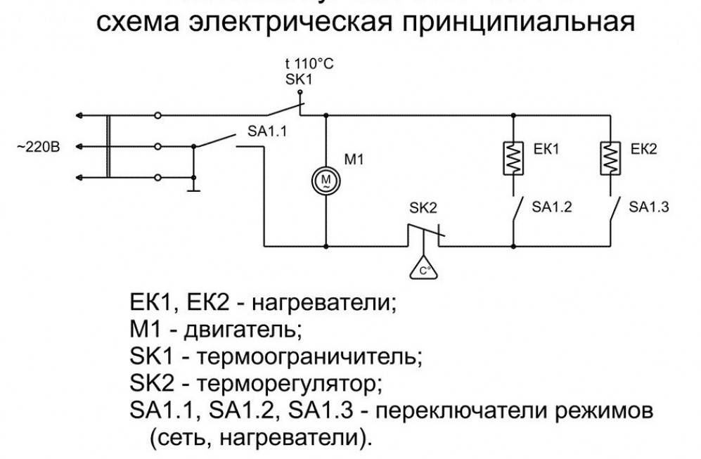 Так выглядит чертеж принципиальной электрической схемы тепловой пушки