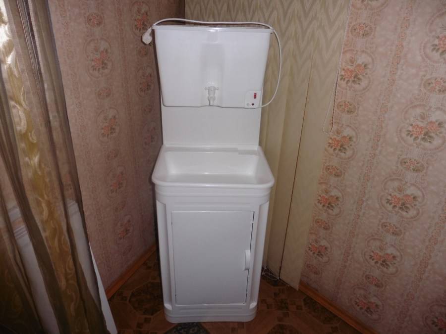 Умывальник для дачи с подогревом имеет специфическую конструкцию, позволяющую эффективно выполнять свои функции: