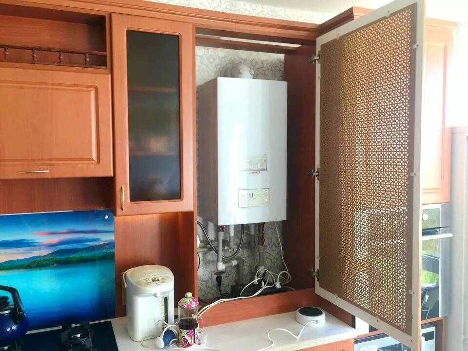 Также важно соблюдать расстояние между стенками всех приборов. Сплошной шкаф разрешается использовать, когда в водонагревателе есть собственная камера сгорания. В поиске решений о том, как эффектно замаскировать газовую колонку, нужно подстраиваться под ограничения и требования, указанные выше