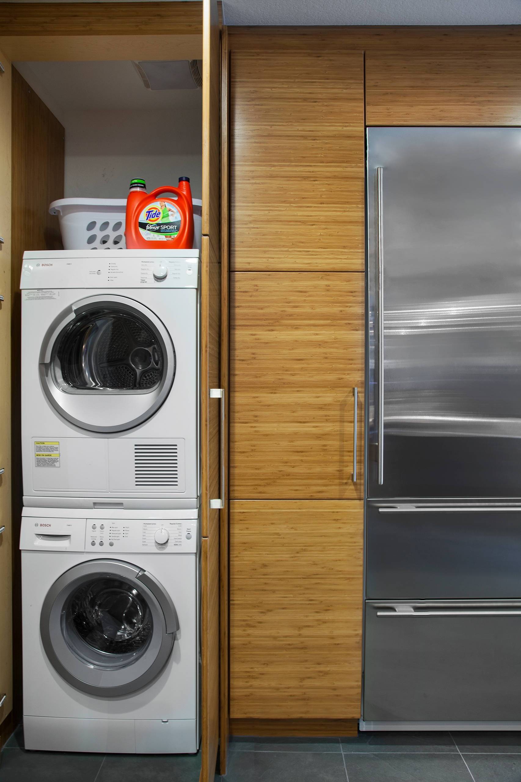 Постарайтесь создать себе такой максимальный комфорт для работы с бельем. Разместите рядом стиральную и сушильную технику.